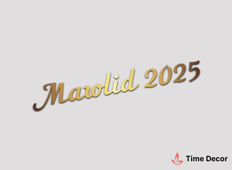 Пластиковий напис "Mawlid 2025" – дзеркальний або матовий пластик, можливе виготовлення з клейкою зворотною поверхнею для легкого монтажу.