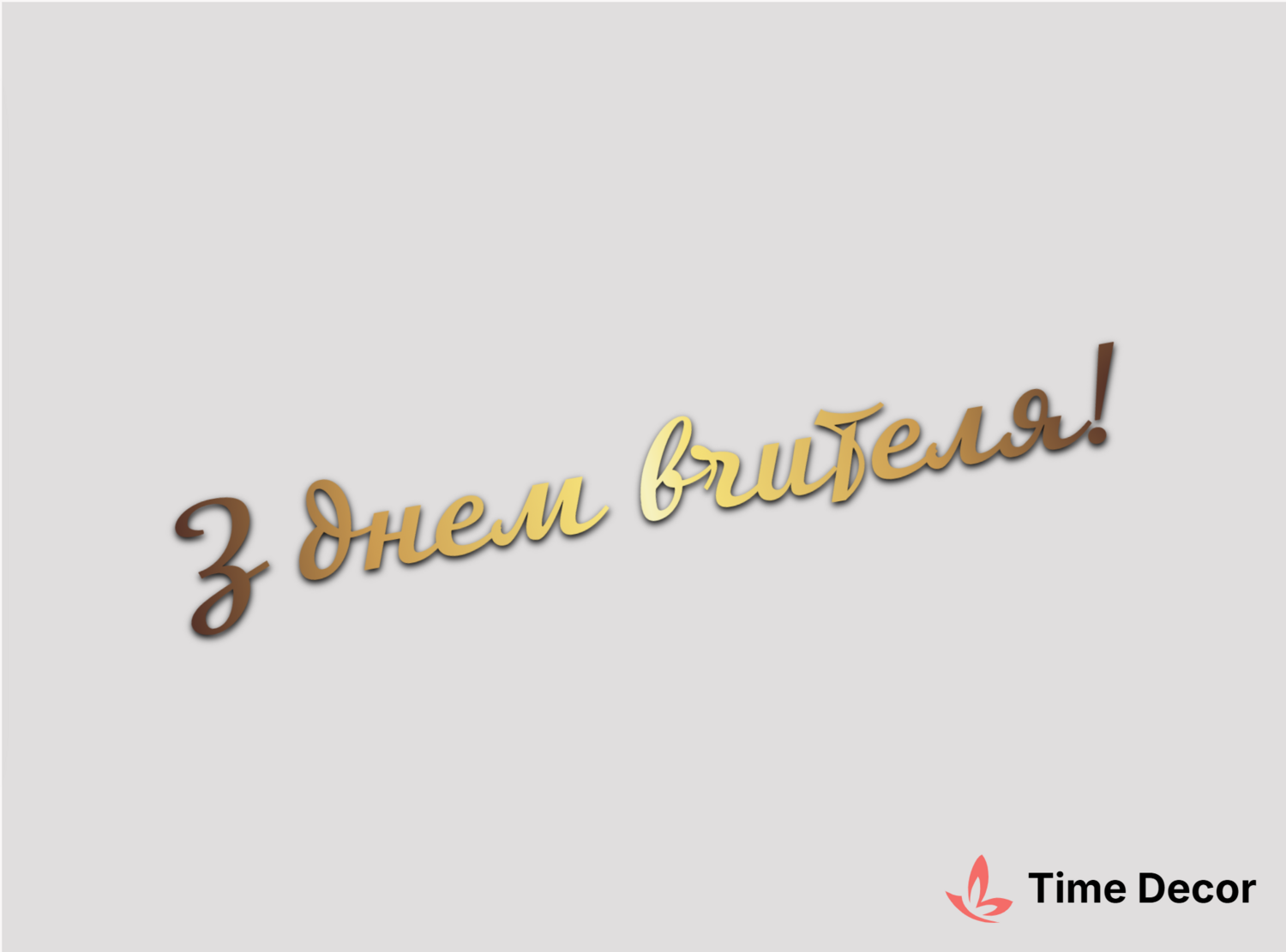 Пластиковий напис "З днем вчителя!" – дзеркальний або матовий пластик, можливе виготовлення з клейкою зворотною поверхнею для легкого монтажу.
