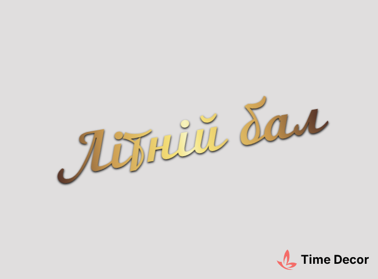 Пластиковий напис "Літній бал" – дзеркальний або матовий пластик, можливе виготовлення з клейкою зворотною поверхнею для легкого монтажу.