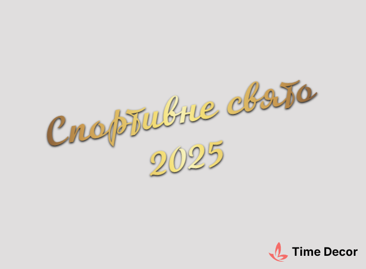 Пластиковий напис "Спортивне свято 2025" – дзеркальний або матовий пластик, можливе виготовлення з клейкою зворотною поверхнею для легкого монтажу.