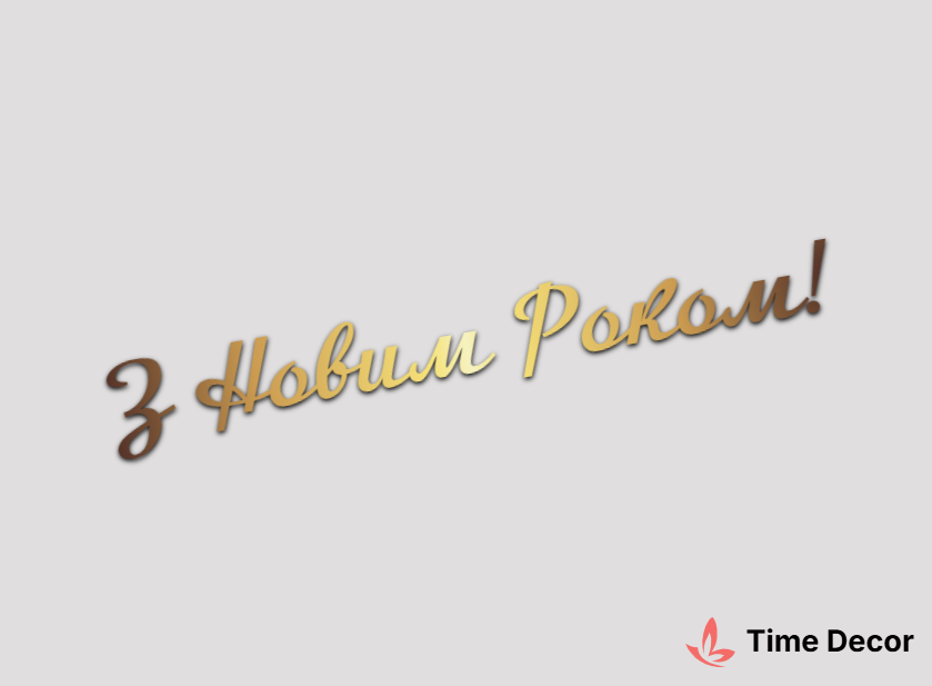 Пластиковий напис "З Новим Роком!" – дзеркальний або матовий пластик, можливе виготовлення з клейкою зворотною поверхнею для легкого монтажу.