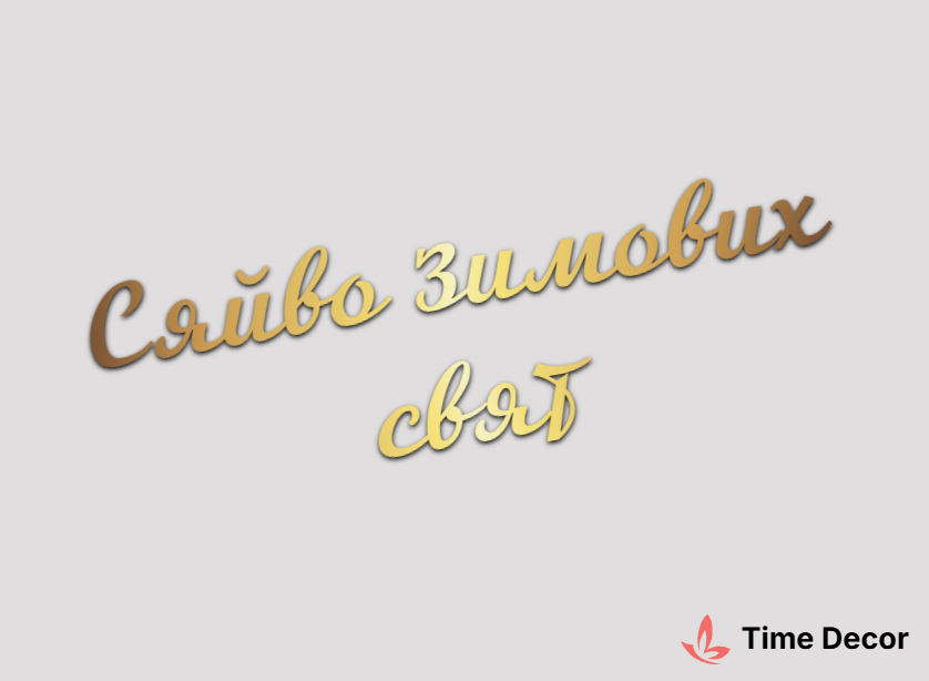 Пластиковий напис "Сяйво зимових свят" – дзеркальний або матовий пластик, можливе виготовлення з клейкою зворотною поверхнею для легкого монтажу.