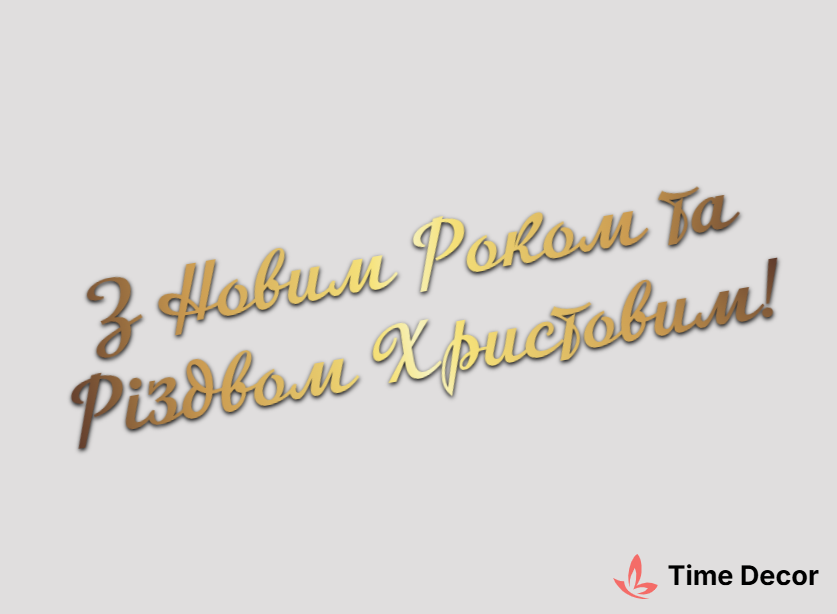 Пластиковий напис "З Новим Роком та Різдвом Христовим!" – дзеркальний або матовий пластик, можливе виготовлення з клейкою зворотною поверхнею для легкого монтажу.