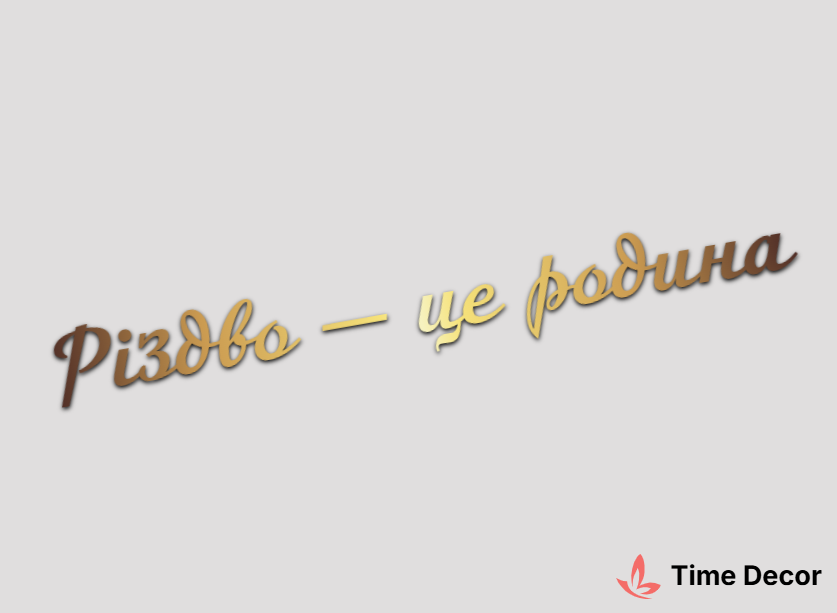 Пластиковий напис "Різдво — це родина" – дзеркальний або матовий пластик, можливе виготовлення з клейкою зворотною поверхнею для легкого монтажу.