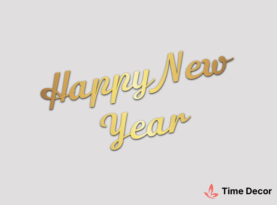 Пластиковий напис "Happy New Year" – дзеркальний або матовий пластик, можливе виготовлення з клейкою зворотною поверхнею для легкого монтажу.