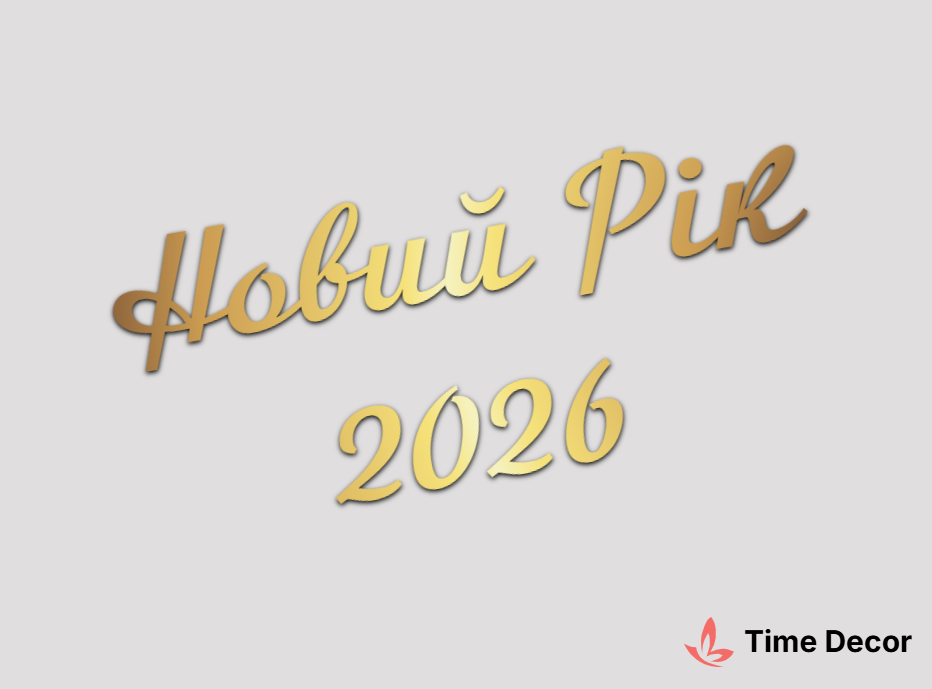 Пластиковий напис "Новий Рік 2026" – дзеркальний або матовий пластик, можливе виготовлення з клейкою зворотною поверхнею для легкого монтажу.