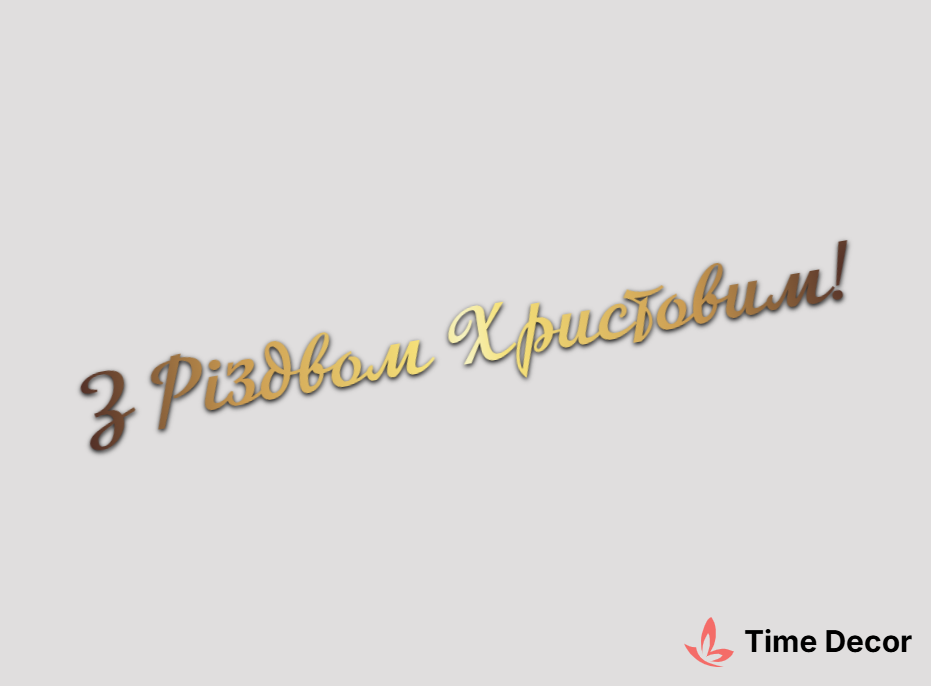 Пластиковий напис "З Різдвом Христовим!" – дзеркальний або матовий пластик, можливе виготовлення з клейкою зворотною поверхнею для легкого монтажу.