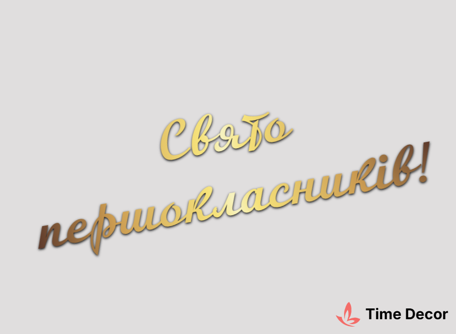 Пластиковий напис "Свято першокласників!" – дзеркальний або матовий пластик, можливе виготовлення з клейкою зворотною поверхнею для легкого монтажу.