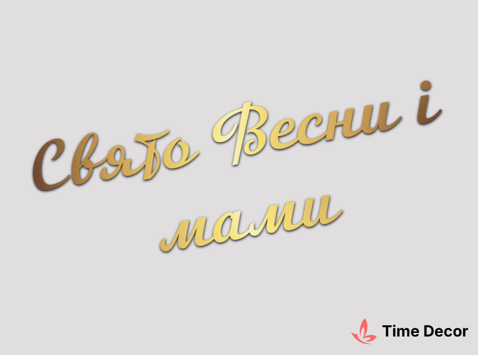 Пластиковий напис "Свято Весни і мами" – дзеркальний або матовий пластик, можливе виготовлення з клейкою зворотною поверхнею для легкого монтажу.