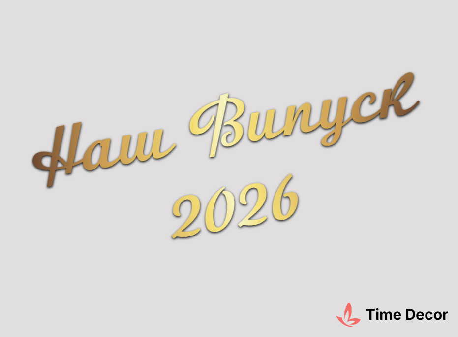 Пластиковий напис "Наш Випуск 2026" – дзеркальний або матовий пластик, можливе виготовлення з клейкою зворотною поверхнею для легкого монтажу.