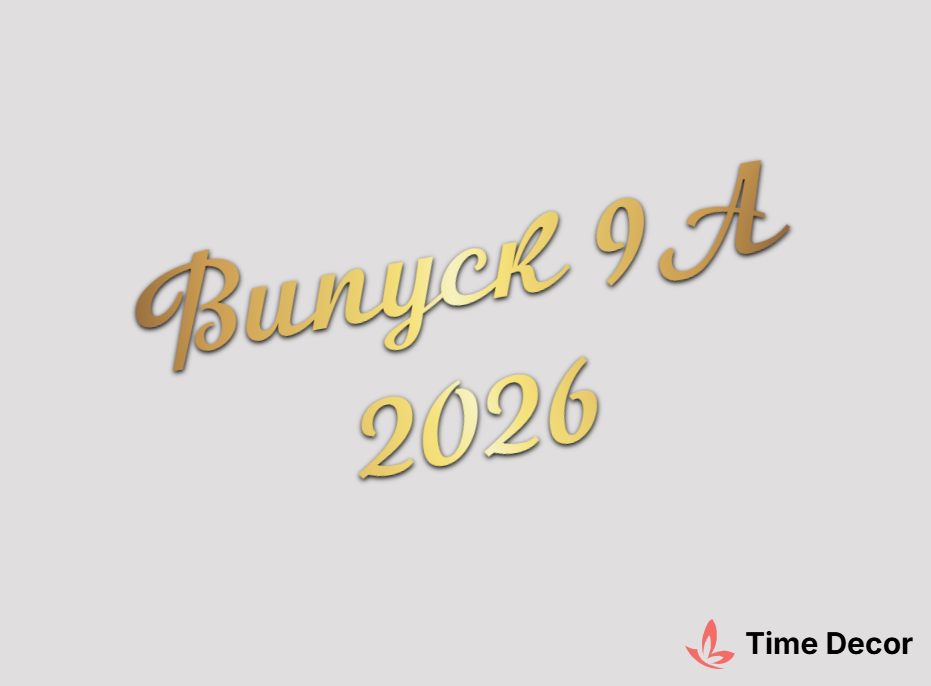 Пластиковий напис "Випуск 9А 2026" – дзеркальний або матовий пластик, можливе виготовлення з клейкою зворотною поверхнею для легкого монтажу.