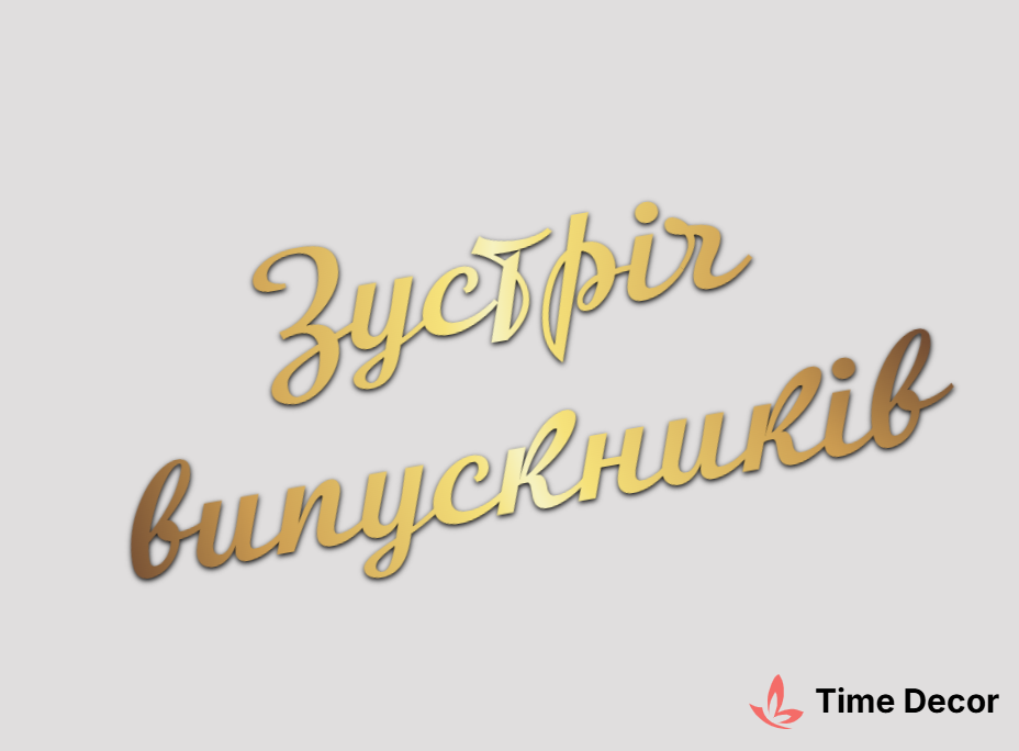 Пластиковий напис "Зустріч випускників" – дзеркальний або матовий пластик, можливе виготовлення з клейкою зворотною поверхнею для легкого монтажу.