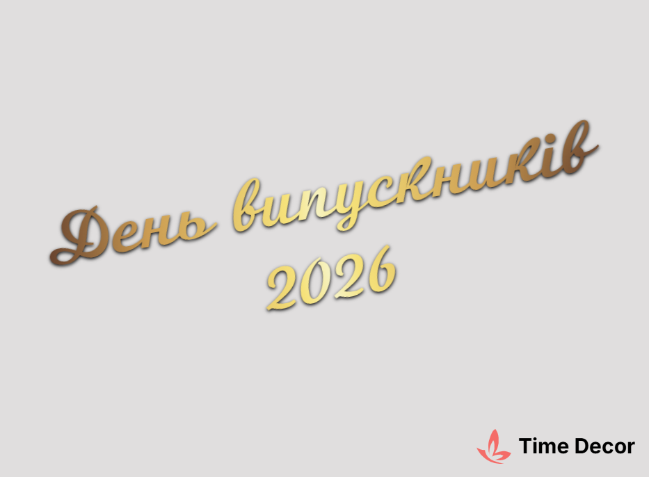 Пластиковий напис "День випускників 2026" – дзеркальний або матовий пластик, можливе виготовлення з клейкою зворотною поверхнею для легкого монтажу.