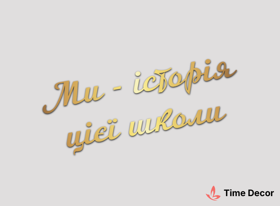 Пластиковий напис "Ми - історія цієї школи" – дзеркальний або матовий пластик, можливе виготовлення з клейкою зворотною поверхнею для легкого монтажу.
