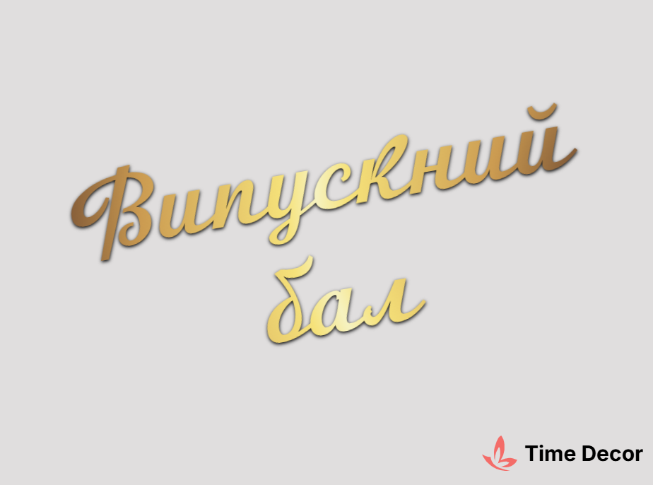 Пластиковий напис "Випускний бал" – дзеркальний або матовий пластик, можливе виготовлення з клейкою зворотною поверхнею для легкого монтажу.