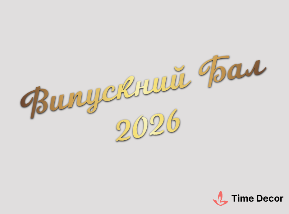 Пластиковий напис "Випускний Бал 2026" – дзеркальний або матовий пластик, можливе виготовлення з клейкою зворотною поверхнею для легкого монтажу.