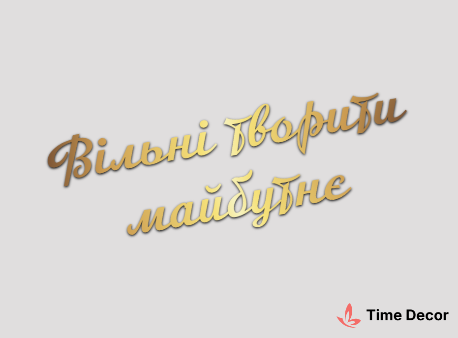 Пластиковий напис "Вільні творити майбутнє" – дзеркальний або матовий пластик, можливе виготовлення з клейкою зворотною поверхнею для легкого монтажу.