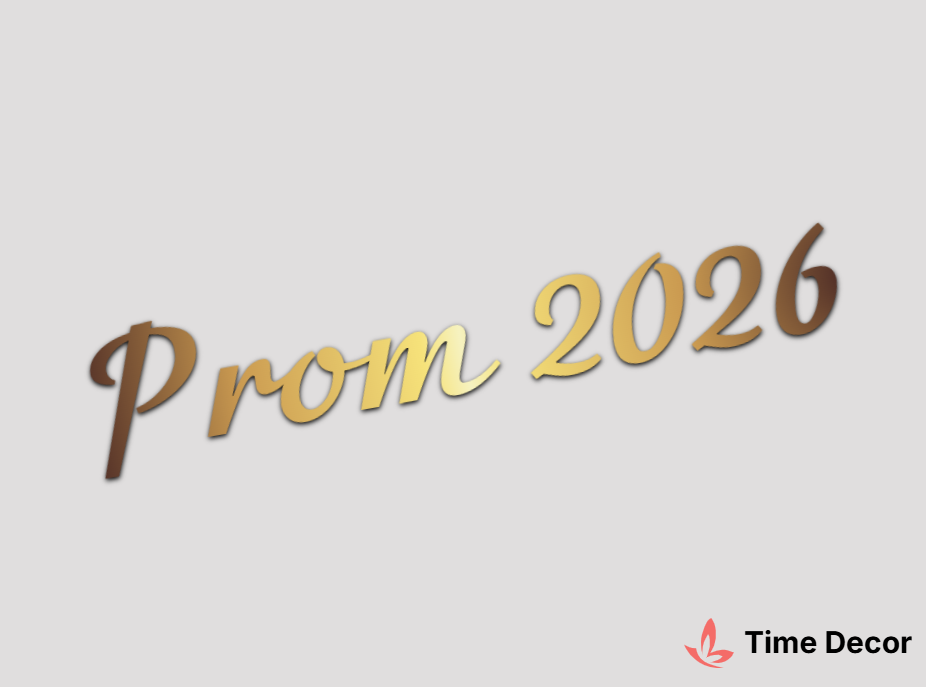 Пластиковий напис "Prom 2026" – дзеркальний або матовий пластик, можливе виготовлення з клейкою зворотною поверхнею для легкого монтажу.