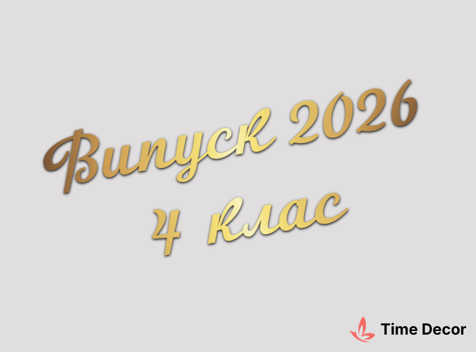 Пластиковий напис "Випуск 2026 4 клас" – дзеркальний або матовий пластик, можливе виготовлення з клейкою зворотною поверхнею для легкого монтажу.