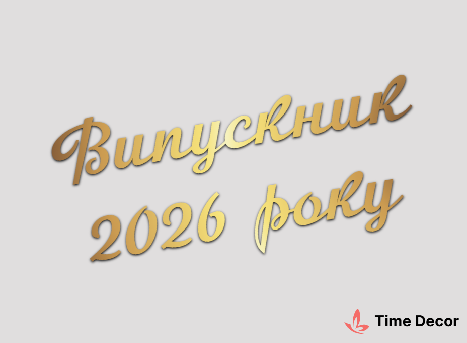 Пластиковий напис "Випускник 2026 року" – дзеркальний або матовий пластик, можливе виготовлення з клейкою зворотною поверхнею для легкого монтажу.