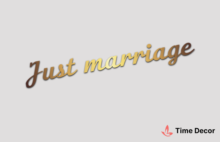 Пластиковий напис "Just marriage" – дзеркальний або матовий пластик, можливе виготовлення з клейкою зворотною поверхнею для легкого монтажу.
