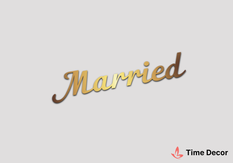 Пластиковий напис "Married" – дзеркальний або матовий пластик, можливе виготовлення з клейкою зворотною поверхнею для легкого монтажу.