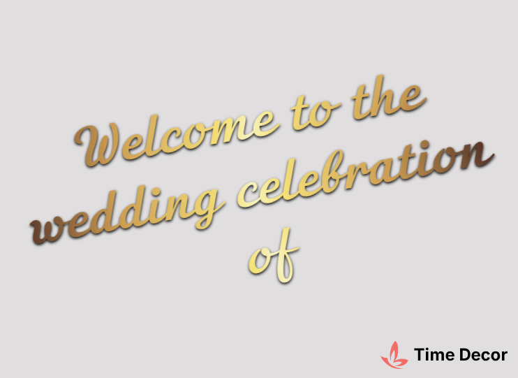 Пластиковий напис "Welcome to the wedding celebration of" – дзеркальний або матовий пластик, можливе виготовлення з клейкою зворотною поверхнею для легкого монтажу.