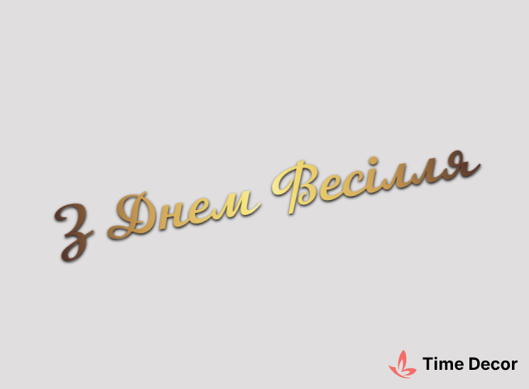 Пластиковий напис "З Днем Весілля" – дзеркальний або матовий пластик, можливе виготовлення з клейкою зворотною поверхнею для легкого монтажу.