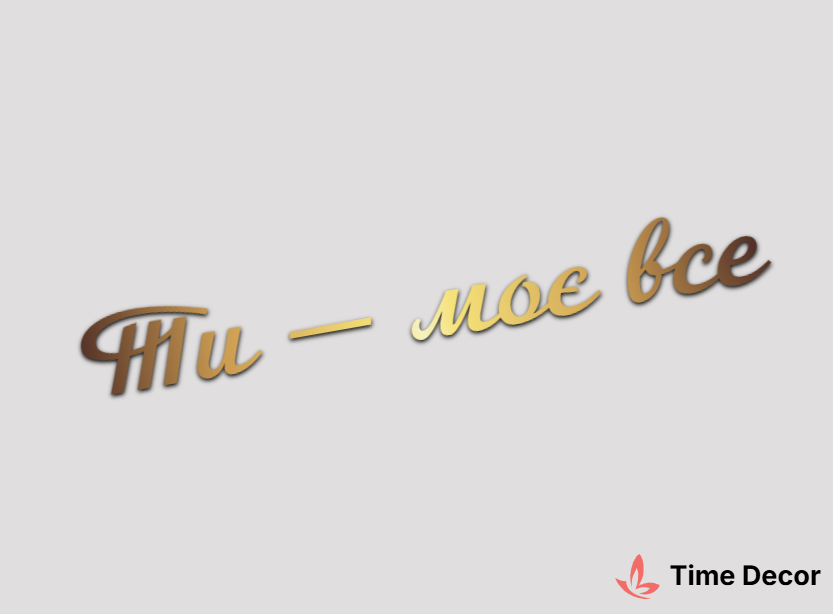 Пластиковий напис "Ти — моє все" – дзеркальний або матовий пластик, можливе виготовлення з клейкою зворотною поверхнею для легкого монтажу.