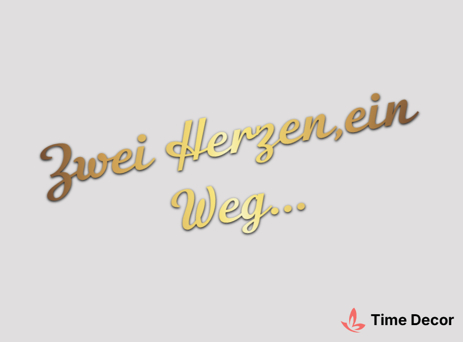 Пластиковий напис "Zwei Herzen,ein Weg..." – дзеркальний або матовий пластик, можливе виготовлення з клейкою зворотною поверхнею для легкого монтажу.