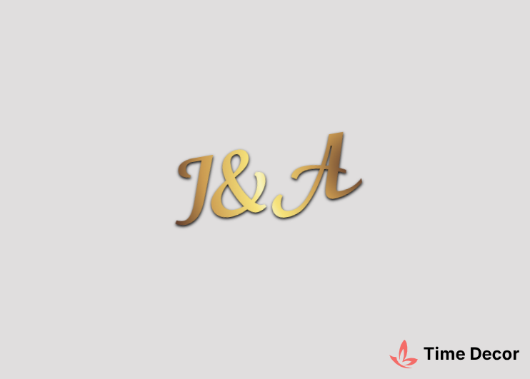 Глітерний напис "І&А" – розкішний варіант у блискучих відтінках для святкового оформлення.