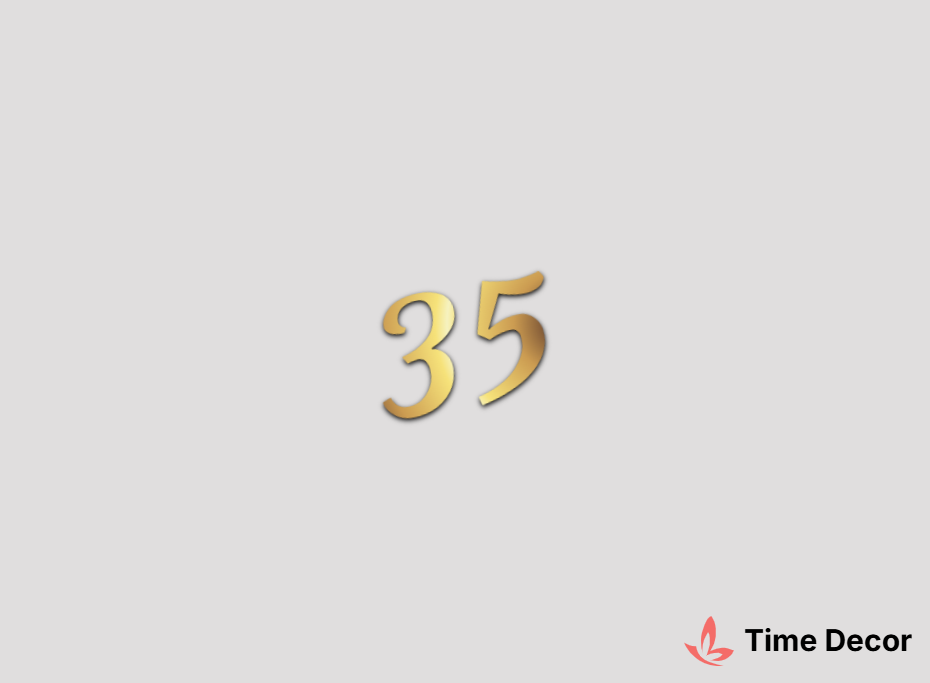 Пластиковий напис "35" – дзеркальний або матовий пластик, можливе виготовлення з клейкою зворотною поверхнею для легкого монтажу.