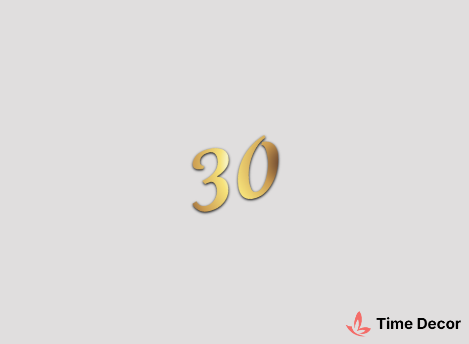Пластиковий напис "30" – дзеркальний або матовий пластик, можливе виготовлення з клейкою зворотною поверхнею для легкого монтажу.