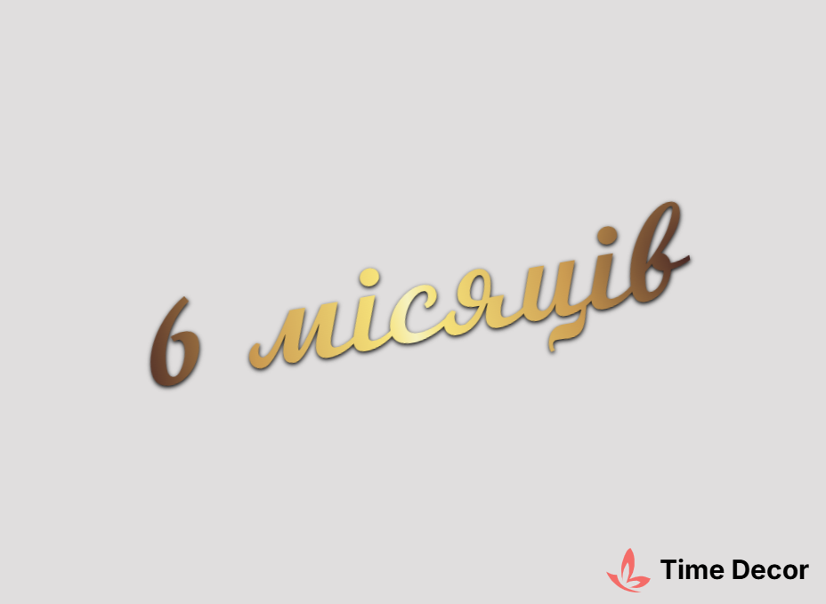 Пластиковий напис "6 місяців" – дзеркальний або матовий пластик, можливе виготовлення з клейкою зворотною поверхнею для легкого монтажу.
