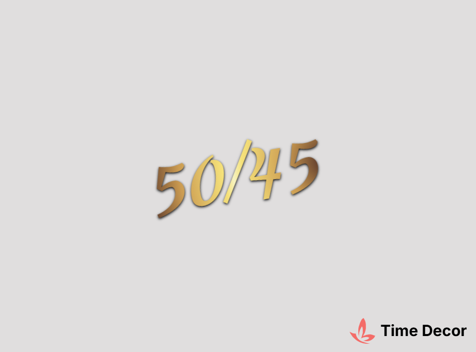Пластиковий напис "50/45" – дзеркальний або матовий пластик, можливе виготовлення з клейкою зворотною поверхнею для легкого монтажу.