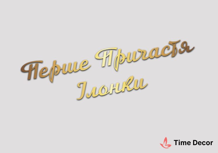 Пластиковий напис "Перше Причастя Ілонки" – дзеркальний або матовий пластик, можливе виготовлення з клейкою зворотною поверхнею для легкого монтажу.