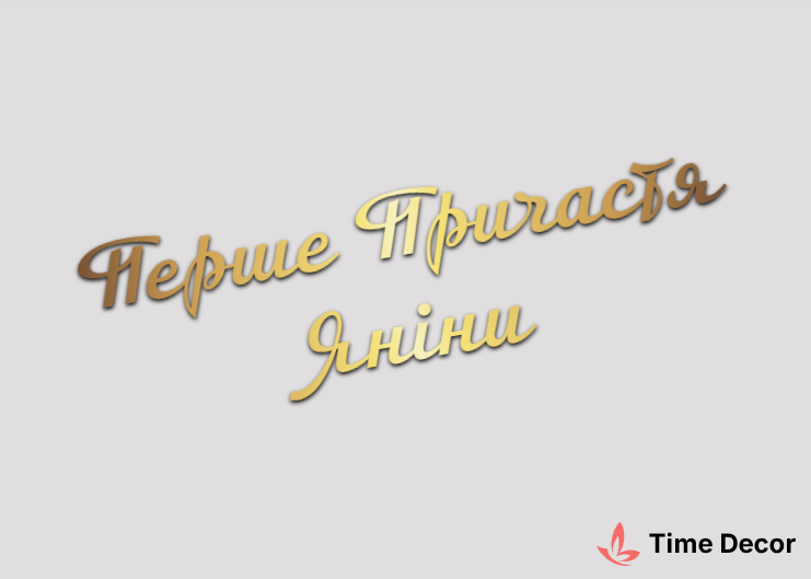 Пластиковий напис "Перше Причастя Яніни" – дзеркальний або матовий пластик, можливе виготовлення з клейкою зворотною поверхнею для легкого монтажу.