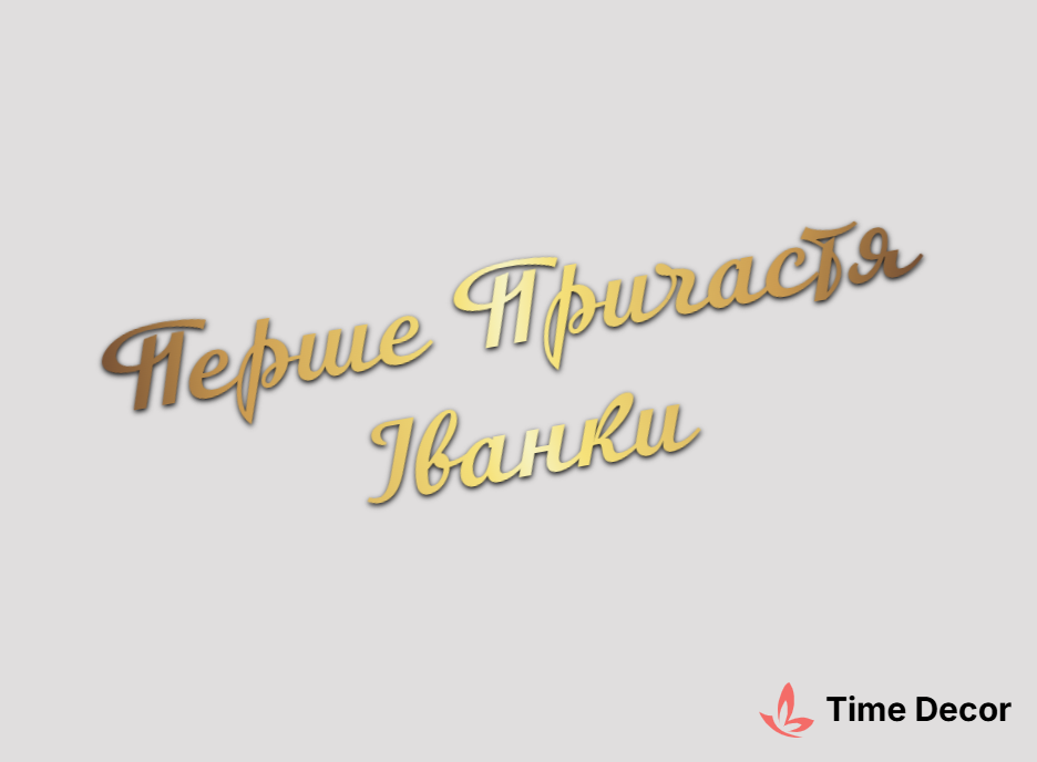Пластиковий напис "Перше Причастя Іванки" – дзеркальний або матовий пластик, можливе виготовлення з клейкою зворотною поверхнею для легкого монтажу.