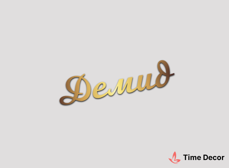 Пластиковий напис "Демид" – дзеркальний або матовий пластик, можливе виготовлення з клейкою зворотною поверхнею для легкого монтажу.