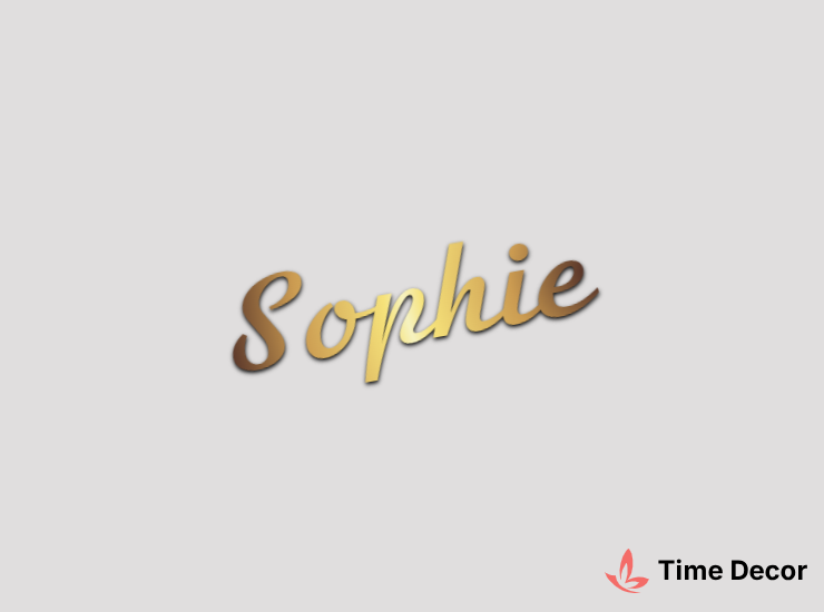 Пластиковий напис "Sophie" – дзеркальний або матовий пластик, можливе виготовлення з клейкою зворотною поверхнею для легкого монтажу.