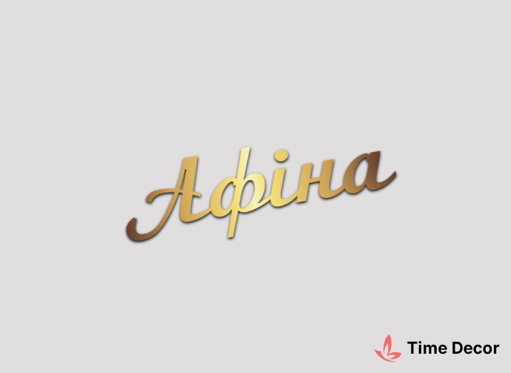 Пластиковий напис "Афіна" – дзеркальний або матовий пластик, можливе виготовлення з клейкою зворотною поверхнею для легкого монтажу.