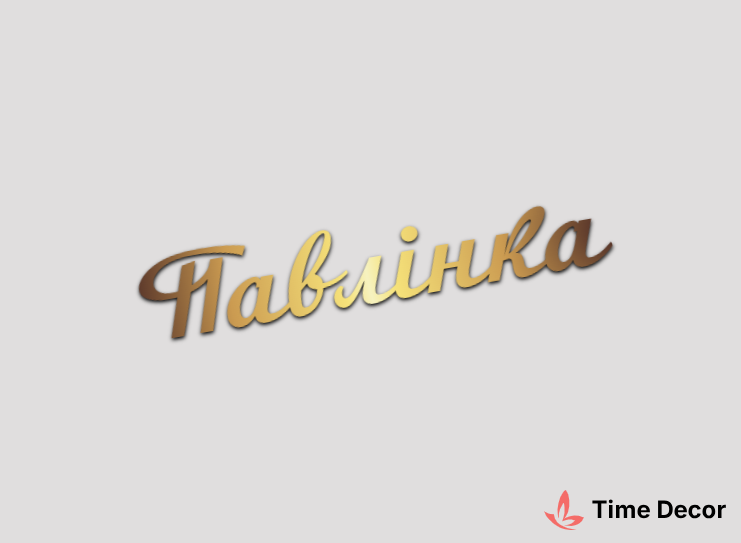 Пластиковий напис "Павлінка" – дзеркальний або матовий пластик, можливе виготовлення з клейкою зворотною поверхнею для легкого монтажу.