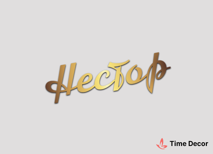Пластиковий напис "Нестор" – дзеркальний або матовий пластик, можливе виготовлення з клейкою зворотною поверхнею для легкого монтажу.