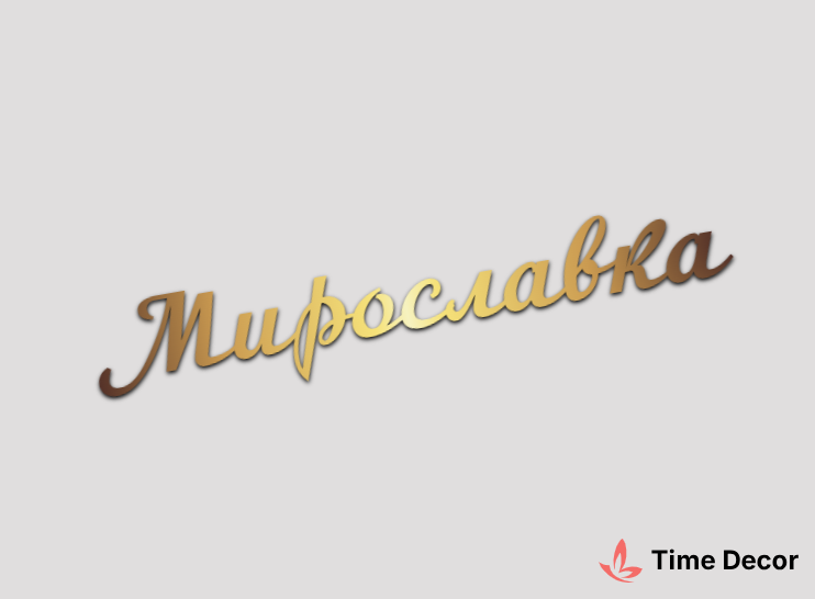 Глітерний напис "Мирославка" – розкішний варіант у блискучих відтінках для святкового оформлення.