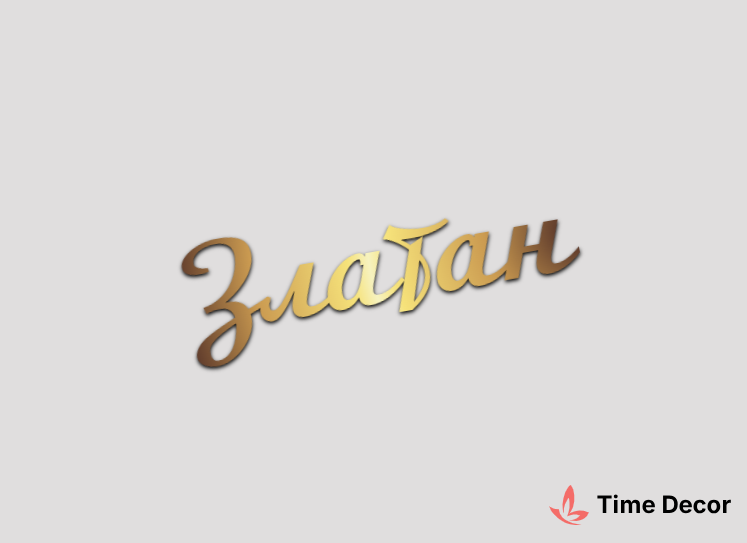 Пластиковий напис "Златан" – дзеркальний або матовий пластик, можливе виготовлення з клейкою зворотною поверхнею для легкого монтажу.
