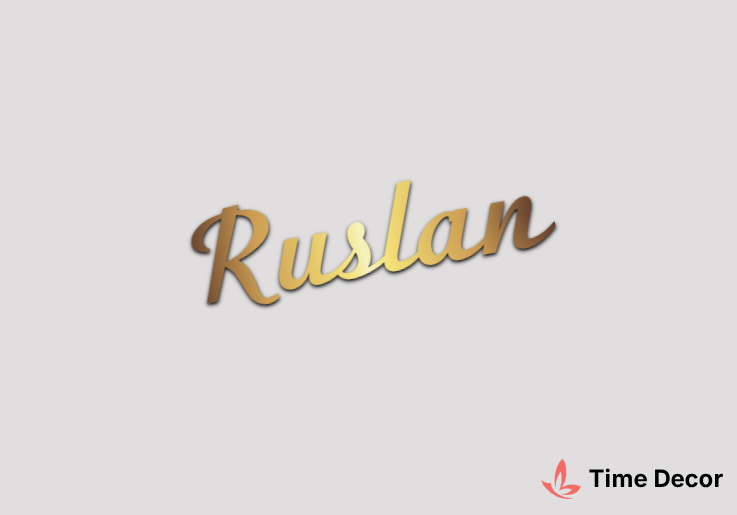Пластиковий напис "Ruslan" – дзеркальний або матовий пластик, можливе виготовлення з клейкою зворотною поверхнею для легкого монтажу.