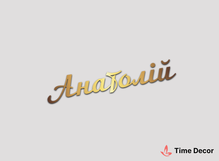 Пластиковий напис "Анатолій" – дзеркальний або матовий пластик, можливе виготовлення з клейкою зворотною поверхнею для легкого монтажу.