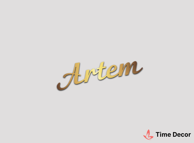 Пластиковий напис "Artem" – дзеркальний або матовий пластик, можливе виготовлення з клейкою зворотною поверхнею для легкого монтажу.