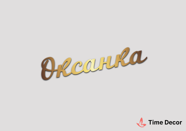 Пластиковий напис "Оксанка" – дзеркальний або матовий пластик, можливе виготовлення з клейкою зворотною поверхнею для легкого монтажу.