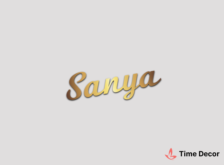 Пластиковий напис "Sanya" – дзеркальний або матовий пластик, можливе виготовлення з клейкою зворотною поверхнею для легкого монтажу.